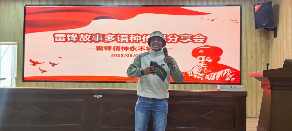 随后,来自摩洛哥、布隆迪、肯尼亚、杜马、巴基斯坦等11个国家的留学生依次登台,用汉语、英语、法语、阿拉伯语等语言深情讲述雷锋故事,并结合本国文化分享对雷锋精神的理解。越南留学生阮秋芳将雷锋与越南人民敬仰的胡志明主席的事迹相联结,展现了无私奉献精神的共通性。摩洛哥留学生欧宇结合雷锋同志在坐火车出差帮助老奶奶找座位的故事,动情的表示:“雷锋的故事让我明白,平凡人也能用善举温暖世界,我要像他一样,做一颗对社会有用的‘螺丝钉’。”