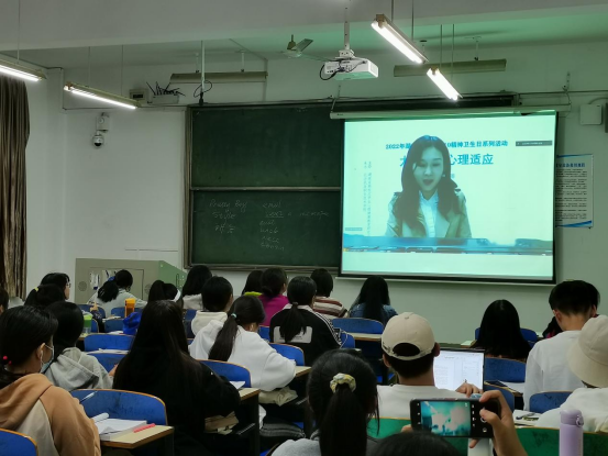 为响应国家号召,积极推进“健康中国行动”之“心理健康促进行动”,推广心理健康教育知识与活动,促进大学生心理健康素质提升,关爱新生心理状况。在437必赢会员中心校心理部的组织下,10月11日晚19:00,外国语学院朋辈心理互助部组织新生在437必赢会员中心金盆岭校区六教201、202、203、204、303教室集中观看了成长大讲堂第一场讲座《大学生心理适应》。