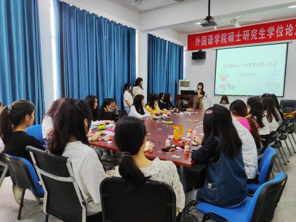 为了帮助同学们在集体中找到自我、学会与他人交往,同时缓解疫情期间封闭的焦躁情绪,外国语学院朋辈心理互助部于2022年4月23日下午面向21级全体学生在金盆岭校区九教406开展了21级团体辅导,共计26名同学参与。