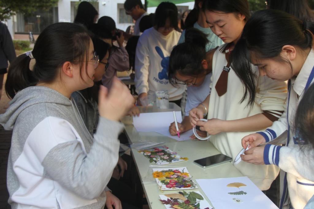 “疗愈心弦,共绘心曲”情绪收藏馆活动共包括四个部分,一是“明信片交换”活动,参与者在明信片上写下最近烦恼的情绪或者鼓励的寄语,将明信片投入摆点纸盒的同时拿走一张别人写的明信片;二是“拼贴诗”活动,参与者发挥自己的想象力,利用工作人员提供的素材经过拼贴编织成一首诗;三是“树叶贴花”活动,参与者根据自己的所感所想,利用工作人员提供的树叶等贴纸拼成任何想要表达的东西;四是“微笑交换”活动,参与者用彩笔在卡片上绘制一个笑脸,以此来交换一枚可爱的胸针。同学们将烦恼抒发在明信片里,将灵感编织在拼贴诗里,将奇思妙想蕴藏在贴画里,将快乐美好留藏在微笑里,在表达真情实感的同时学会正确对待情绪,提升情绪价值。
