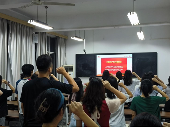 活动开始前,研一的新同志依次进行了自我介绍,他们的热情与活力展现了积极向上的精神风貌,他们的加入为支部注入了新鲜血液。活动第一项全体党员同志重温入党誓词,举起右拳进行宣誓。随后大家集体观看新闻联播中习近平在省部级主要领导干部“学习习近平总书记重要讲话精神,迎接党的二十大”专题研讨班上发表的重要讲话,并积极分享自己的心得感悟。研一同志李征临表示,通过本次学习,更加系统和深入地理解了习近平新时代中国特色社会主义思想理论体系,学会了要用辩证和长远的眼光看待问题,也强化了作为党员的责任担当。我们要爱国爱党,爱校爱院,紧跟学校政策,加强专业学习。