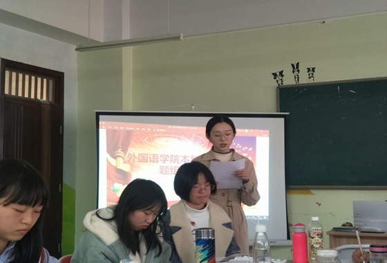 2019年12月10日下午,外国语学院本科生党支部在文科楼A503开展组织生活会。外国语学院本科生党支部全体成员参加,本科生党支部书记王婷婷同志主持会议。
