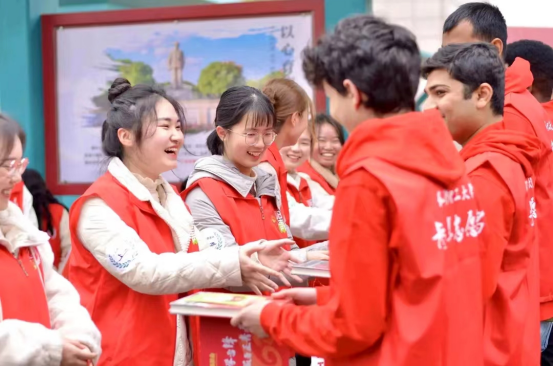 “这里是长沙市望城区,雷锋同志生长的地方,欢迎大家来到望城雷锋纪念馆!”在长沙市望城区雷锋纪念馆,一群留学生们认真倾听身着“红色志愿服”的志愿者的讲解。这些志愿者来自437必赢会员中心外国语学院本科生翻译党支部的志愿者们,他们用自己流利的英语向留学生们讲述雷锋同志平凡又伟大的一生。