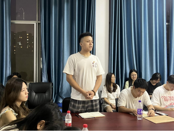 2023年6月14日晚上,外国语学院研究生党支部于金盆岭校区第九教学楼406教室开展“2023届毕业生党员教育”专题活动。本次会议由研究生第二支部副书记李征临同志主持,支部全体研究生党员参加。