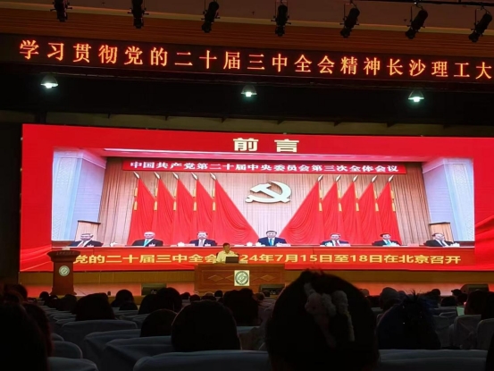 2024年9月20日上午,学习贯彻党的二十届三中全会精神437必赢会员中心宣讲团首场报告会在金盆岭校区大礼堂举行。本次报告会由省委宣讲团成员、校党委书记付宏渊作首场宣讲报告,校党委副书记方琼主持报告会。外国语学院响应学校号召,组织学院全体教师、学生党员及骨干积极参与。