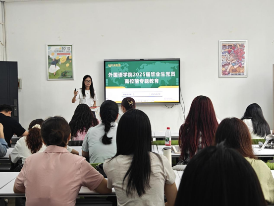 610日下午,外国语学院在三教220教室开展2025届毕业生党员离校前专题教育活动。