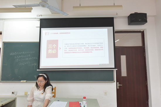 学院党委书记文丽丽为外国语言文学系党支部上党课,她精心制成中国共产党第二十次全国代表大会工作报告一览表,首先阐明大会主题,并从“过去五年的工作和新时代十年的伟大变革”、“开辟马克思主义中国化时代化新境界”、“新时代新征程中国共产党的使命任务”等15个方面进行了归纳总结。报告生动、简明易懂。