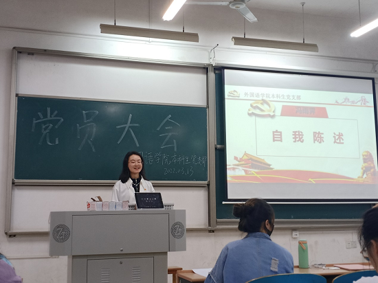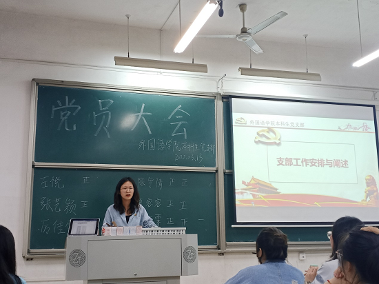 首先由左悦同志宣布支部拆分决议,经过上级党委审批同意将学院本科生党支部按照专业拆成英语党支部、翻译支部。