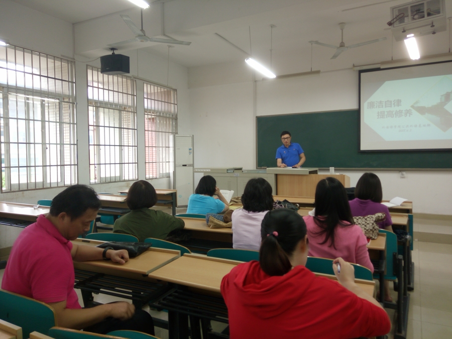 201865日下午2:30,外国语学院公共外语基础部党支部在云塘文科楼A-403召开了主题为“廉洁自律 提高修养”的党日活动。
