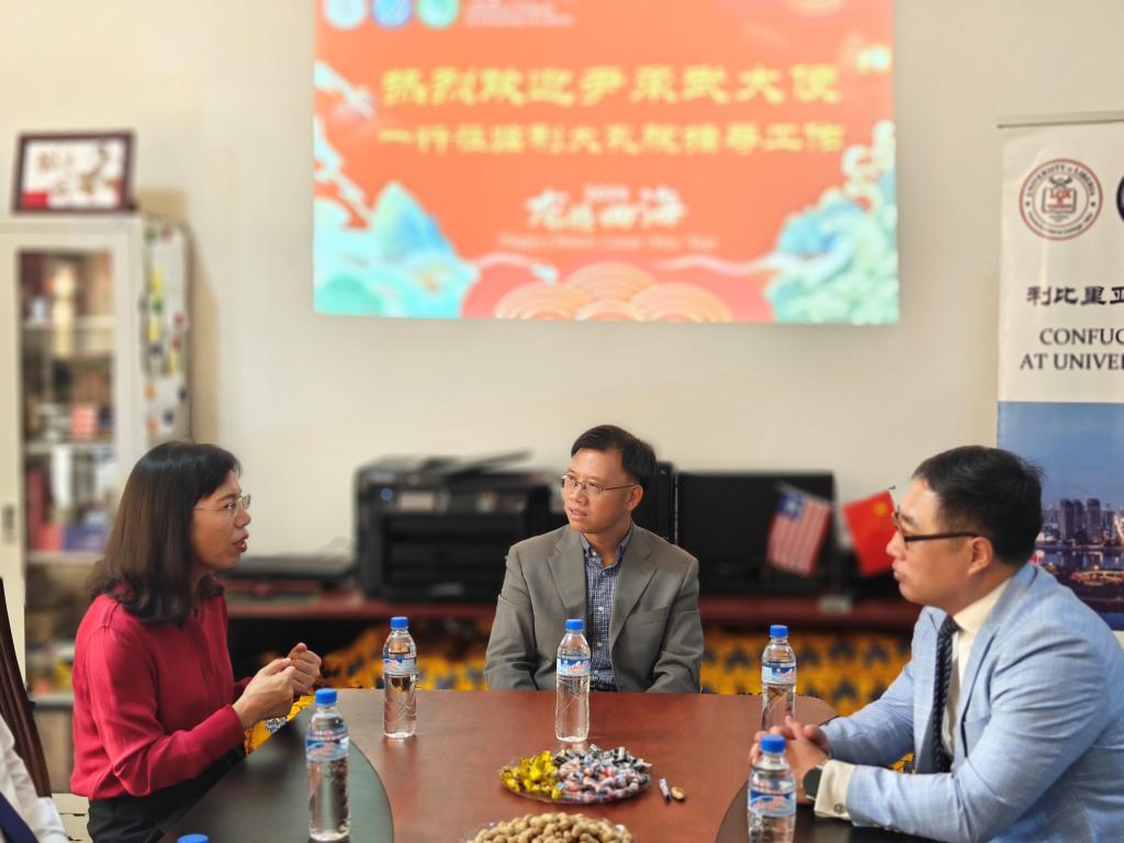 尹承武大使一行亲切慰问利比里亚大学孔子学院