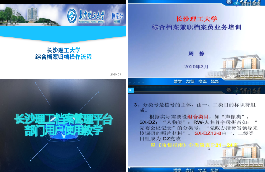 2020年3月17日至19日,档案馆在认真落实学校党委和省档案馆有关疫情防控决策部署精神的基础上,面向全校综合档案兼职档案员就综合档案材料收集归档、综合档案业务管理系统平台使用等举办了三次线上专场培训,全校230多人次参加了本次培训。培训采取腾讯课堂在线直播方式进行,确保了疫情期间档案工作的有序开展,做到了疫情防控和工作推进两不误。