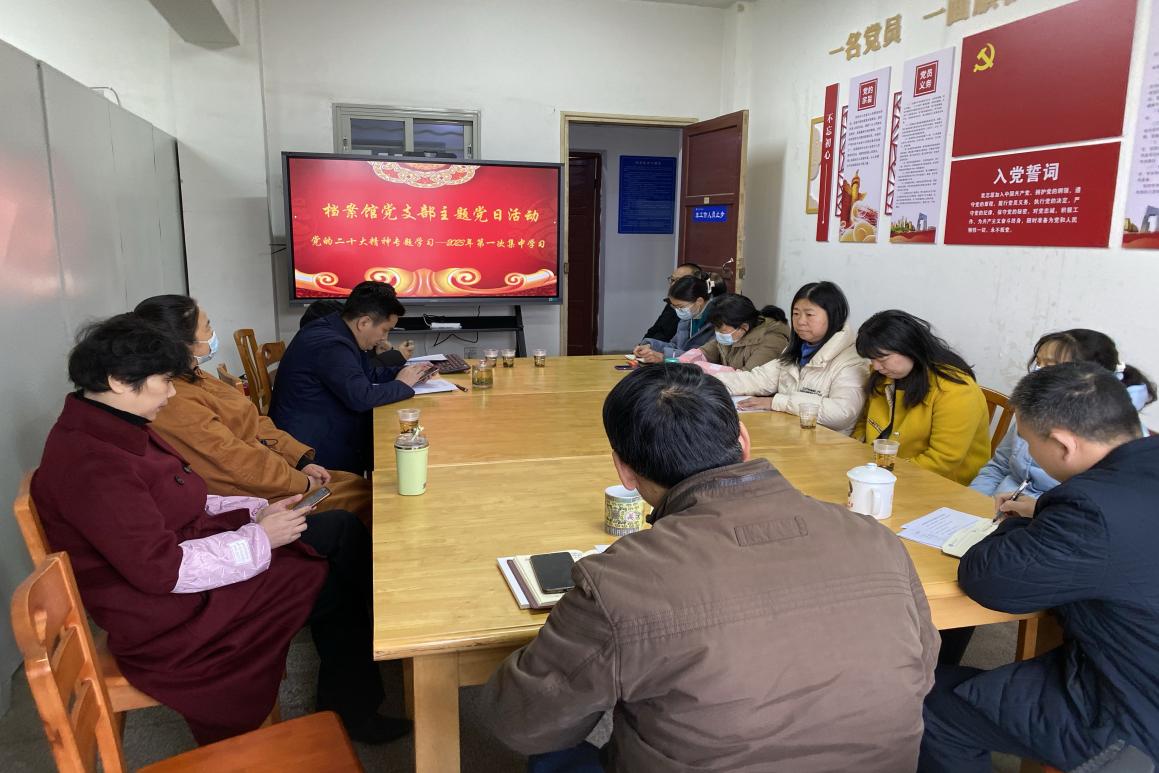 支部书记刘安生强调,今年是全面贯彻落实党的二十大精神开局之年,做好档案工作具有重要意义,要把深入学习贯彻党的二十大精神作为当前和今后一个时期首要政治任务,要坚持原原本本学、融会贯通学、结合实际学,要坚持学以致用,切实将学习成果转化为工作实效,推动党的二十大精神在档案馆落地生根、开花结果。