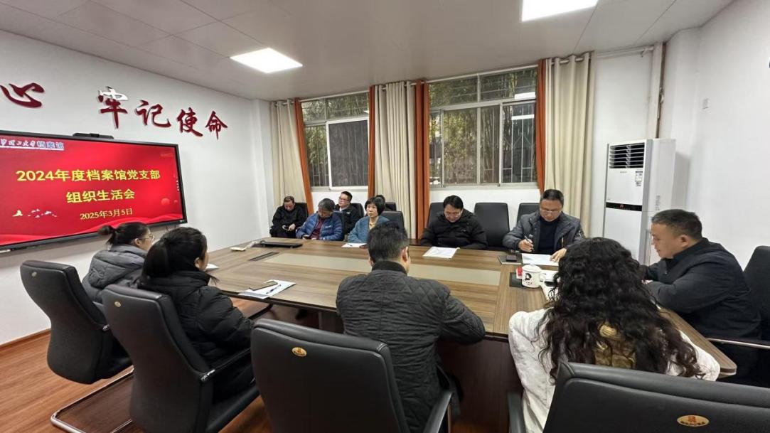 35日下午,档案馆党支部召开2024年度组织生活会,开展民主评议党员工作。会议由支部副书记王任飞主持,支部全体党员参加。