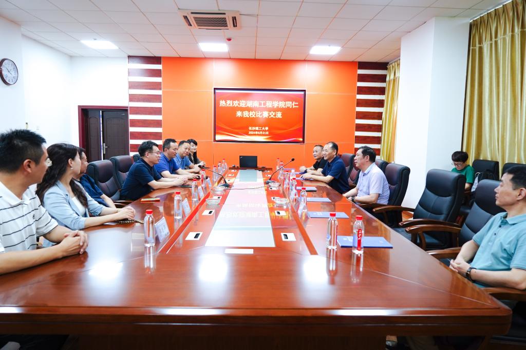 为丰富教职工的文化体育生活,增强校际交流,6月21日下午,湖南工程学院校党委副书记向前、纪委书记齐路良一行14人来必赢官网开展教职工文体活动比赛交流。必赢官网党委委员、副校长钱国平,校工会、土木学院、体育学院等相关部门负责人、参赛队员共30余人参与交流。