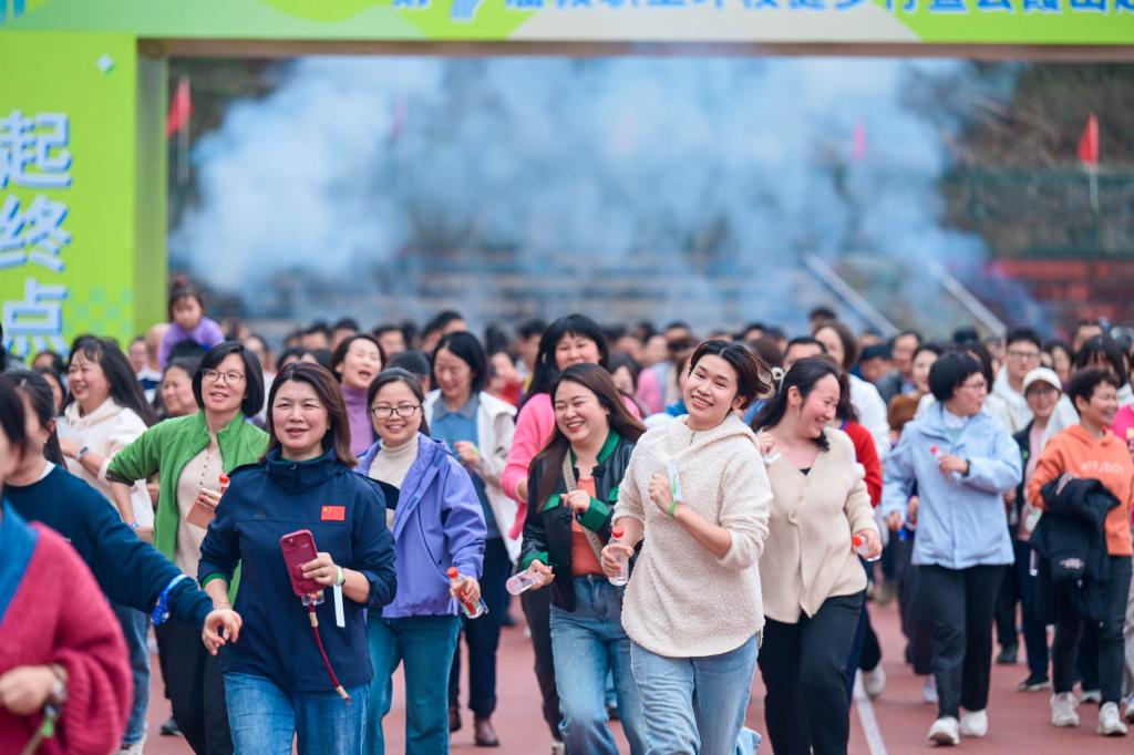 下午3时许,《向快乐出发》热身操点燃现场热情。随着发令枪响,本次活动正式拉开序幕。选手们精神焕发,迎着春日阳光健步如飞。在享受健步走带来活力与激情的同时,教职工们也尽览沿途春意盎然的校园景致。活动特别设置“巾帼芳华.强国有我”“幸福长理.扬帆奋进”“时不待我.只争朝夕”等主题打卡点,沿途“为幸福长理打call”等创意手卡成为热门合影地标,将运动激情转化为文化浸润的生动实践,在4公里的活力征程中展现长理人奋进“双一流”的昂扬姿态。