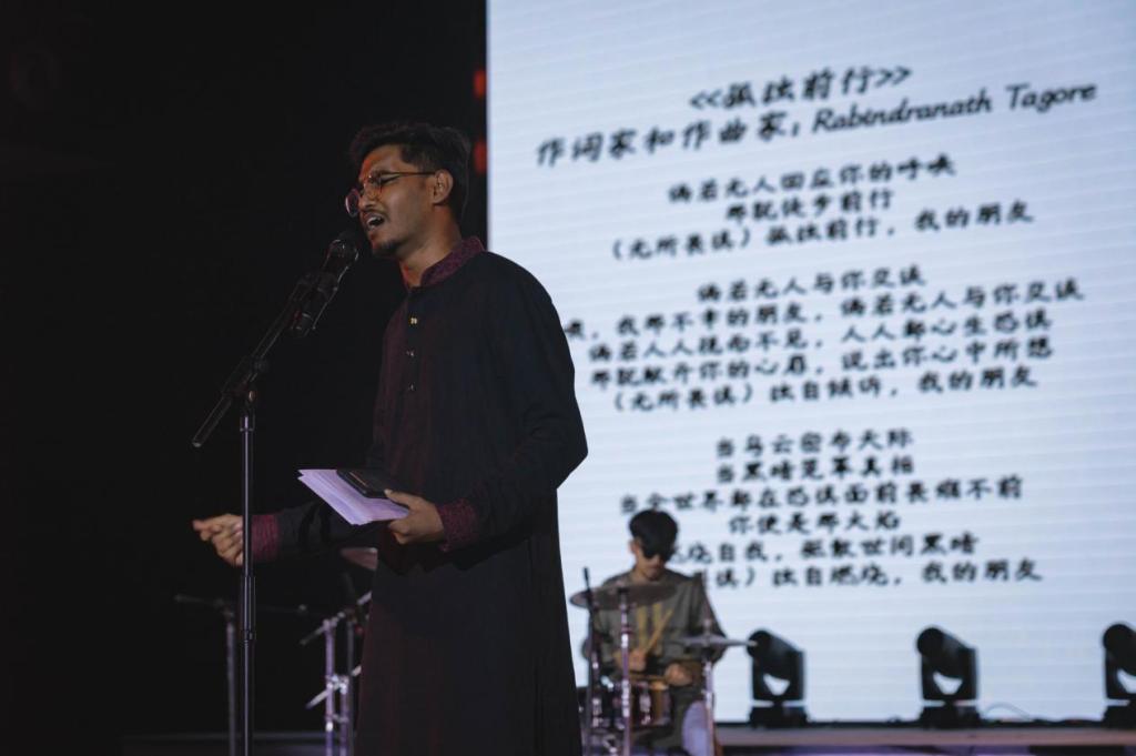 当夜,十个心灵故事伴随着十首旋律,围绕着迷茫、挣扎、感动、力量这四个主题编织色彩。故事主人公来自我们身边平凡的普通人,他们真诚地讲述自己的心路历程,分享鼓励自己成长的音乐。演唱者们则用深情的歌声和真挚的表演,将故事中的情感细腻地传达给每一位听众。《无名的人》分享了作者从北方偏僻小镇来到南方大城市读大学的经历,从不适应到逐渐融入的过程引发了许多新生的同感;苔》的讲述者分享了她在乡村支教时的收获与感动,那些淳朴和真诚深深地打动了现场的每一位观众;《一荤一素》《云落成雨》《好好说再见》等歌曲流露着对父母、朋友难以忘怀的真情;《我的美丽》《第三人称》和《Ekla Chala ree》的故事主人公在抑郁症、校园暴力等挫折中跌跌撞撞地前行,以勇气与力量走出困境。当《Ekla Chala ree》的故事讲述者孟加拉国留学生杰本唱到“如果没有人回应你的呼唤,那就自己走吧”时,现场许多观众都为之触动,也红了眼眶。