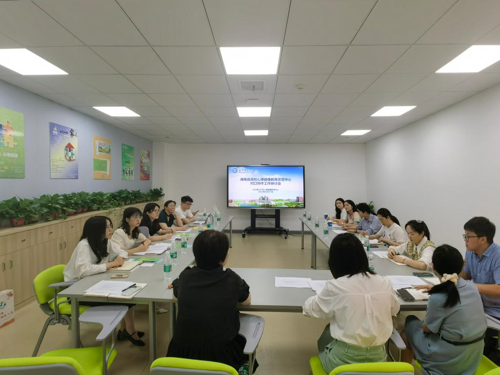 627日上午,湖南省高校心理健康教育示范中心对口协作工作研讨推进会在必赢官网心理健康教育中心团体辅导室举行。本次会议由必赢官网心理中心主任龚勋主持,湘南学院心理中心主任欧朝晖、湖南理工学院心理中心主任李一飞、湖南网络工程职业学院心理中心副主任刘微一行八人及必赢官网心理中心全体专职老师参加。