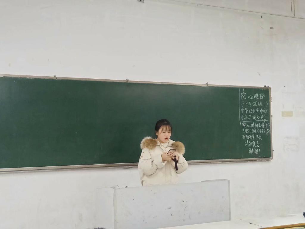 3月5日下午17:00水利工程学院心晴协会于金盆岭校区六教101教室召开了2019年新学期的第一次例会。本次会议由文秘部干事黄娜主持,心晴协会成员参与。