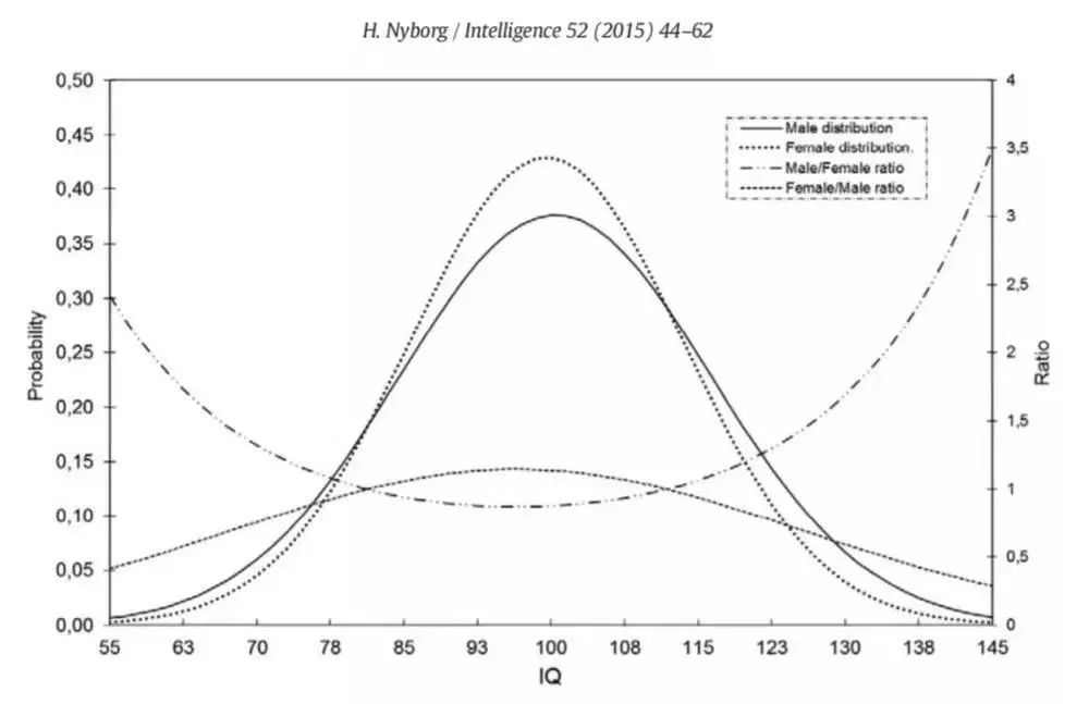 根据许多学者的研究统计,将拥有某种特质的人数绘制成图,得到的正态曲线都表示了男女之间的相似性会远大于差异性,并且同性别的内部差异反而更大。