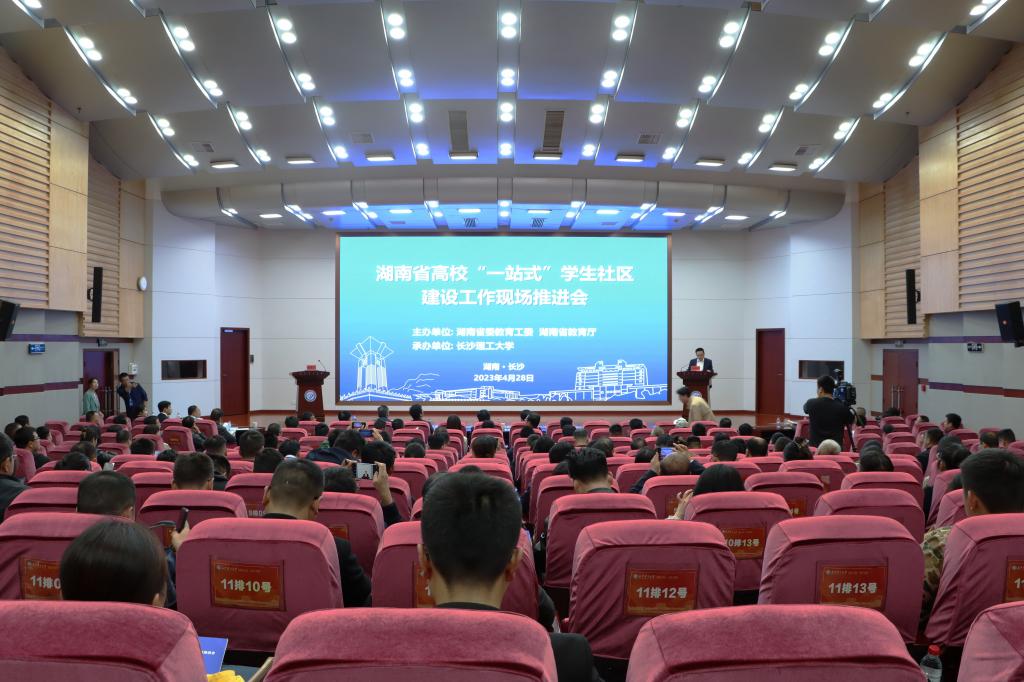 4月28日,湖南省高校“一站式”学生社区建设工作现场推进会在437必赢会员中心云塘校区图书馆报告厅召开。副校长钱国平,湖南省委教育工委宣传部部长、省教育厅思政处处长甘文波、副部长曾思亮出席,全省114所高校学工部及“一站式”学生社区建设负责人,230余名代表参会。大会由省教育工委宣传部、教育厅思政处一级调研员陈解主持。