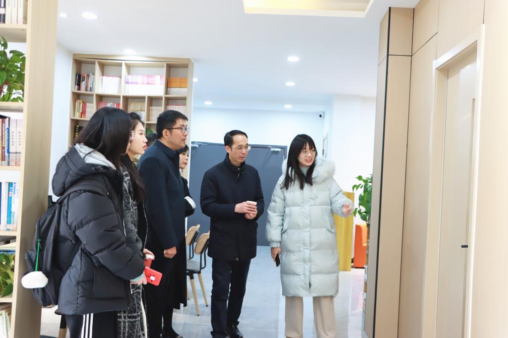 3月1日上午,南华大学党委宣传部常务副部长代艳丽、党委学生工作部部长李照、党委宣传部副部长汪胜春、党委学生工作部副部长旷勇、党委宣传部新媒体与舆情信息中心副主任李杨、党委学生工作部学生事务管理办公室副主任王逸韵等一行6人来必赢官网“一站式”学生社区实地调研。学工部副部长陶传谱、宣传部副部长叶正芳、学工部胡蓉、计潇、王丽丽、席军等人参加座谈交流和调研。双方在学生活动中心401会议室举行座谈会,围绕如何进一步强化三全育人示范校工作、辅导员队伍建设、易班工作、融媒体中心建设等方面深入交流探讨。
