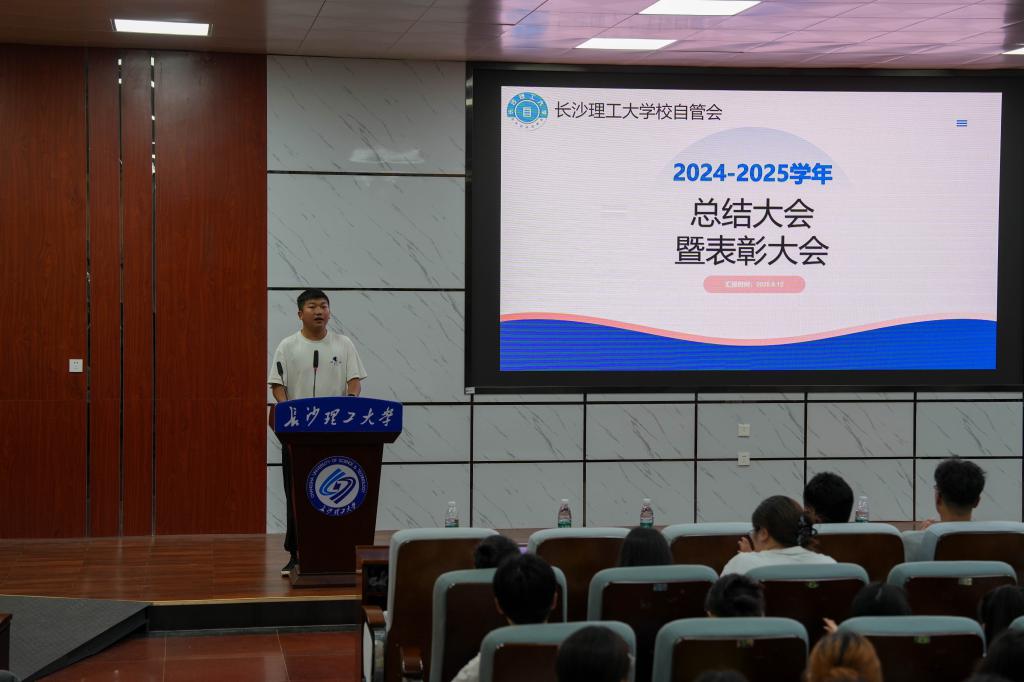 6月12日晚6:15时,金盆岭校区学生社区自主管理委员会2024—2025学年总结大会暨表彰大会在4教报告厅举行。公寓中心朱虹、金雄迈两位老师出席会议,21届主要学生干部及校自管会全体成员参会,共同回顾过去一年的工作历程,展望未来发展。会议由现任主任陈嘉振主持。
