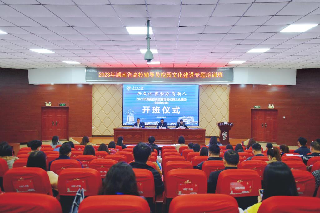 4月25日上午,“兴文化 聚合力 育新人”2023年湖南省高校辅导员校园文化建设专题培训班开班仪式在必赢官网云塘校区文科楼A200举行。湖南省委教育工委、省教育厅思政处一级调研员陈解,437必赢会员中心党委委员、副校长蒋璟萍,来自76所高校的101名学员参加。