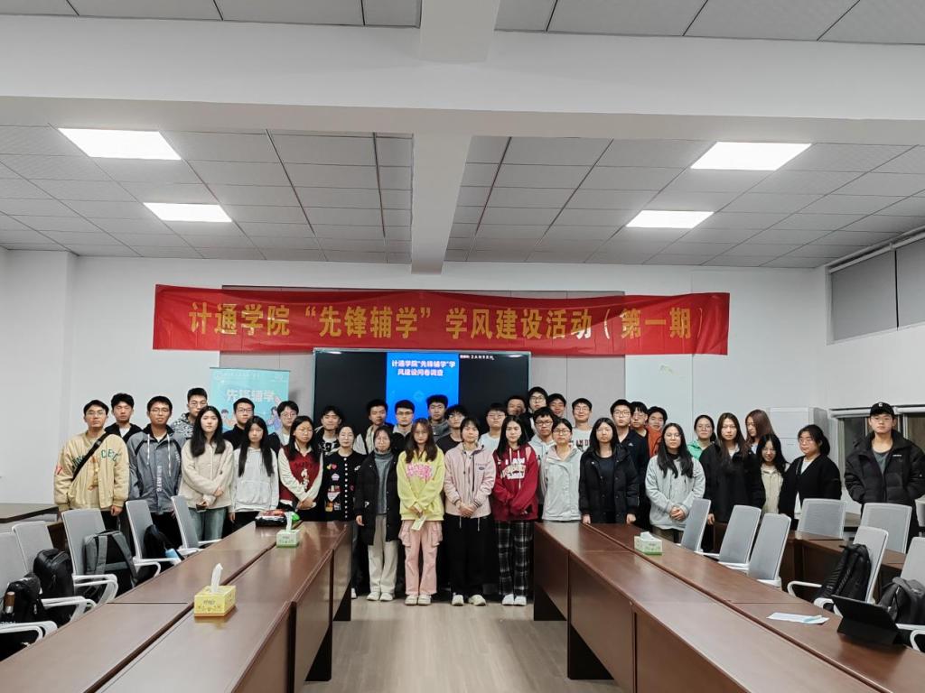 为弘扬“促学育人”的优良学风,充分发挥朋辈帮扶的作用,进一步促进学生沟通交流,3月21日晚,计通学院第一期“先锋辅学”学风建设活动在金盆岭校区九号教学楼217开课,本次活动由辅导员唐菲楠主持,大数据2101班顾永彤、大数据2102班段懿馨主讲,38位学员参与。