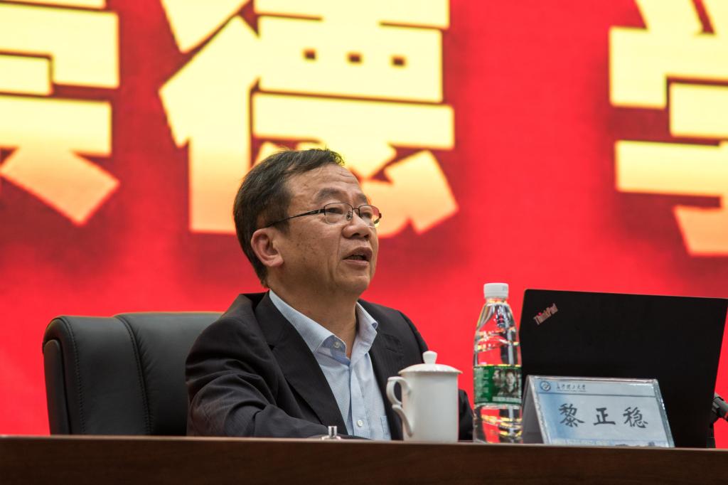 在正式报告之前,黎正稳引用前苏联电影中列宁的台词“如果一个民族忘记历史就意味着背叛”表达了铭记历史的极端重要性。报告以“长理这样走来”为题,分为合校前和合校后两阶段,通过一个个经典的故事和一张张珍贵的历史照片,详细介绍了学校厚重的历史和文化积淀,丰硕的办学成果和“博学、力行、守正、拓新”的校训,深刻阐述了必赢官网在六十多年办学历程中追求卓越的精神品质,特别是“脚踏实地、艰苦奋斗、乐于奉献、锐意进取”的“铺路石”精神。黎正稳深情寄语,今年是中国共产党成立100周年,也是“十四五”的开局之年,学校刚刚召开的第四次党代会,提出了决胜建成“百强”大学的奋斗目标,全体学工干部要切实增强“四个意识”、坚定“四个自信”、做到“两个维护”,以求真务实的作风,牢记育人使命,抓落实、求实效,真正把立德树人的根本任务扛在肩上、抓在手上。