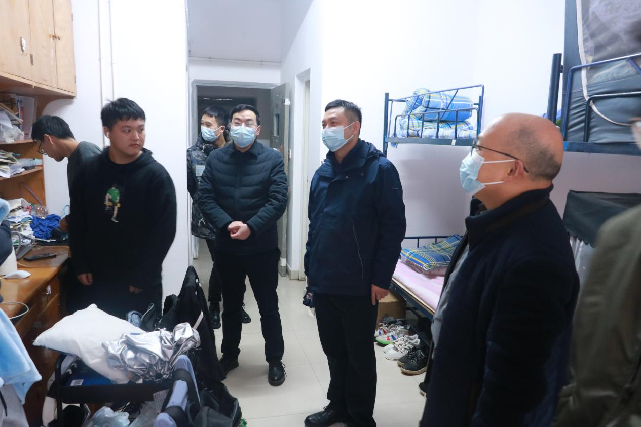 “身体是革命的本钱!同学们要多进行体育锻炼,增强体质,才能搞好学习!”土木学院党委书记江河一行来到西苑11栋学生宿舍,鼓励同学们要以阳光的心态、健康的体魄抗击疫情。材料学院党总支书记唐超文等与学生亲切交谈,深入了解学生的学习、生活、心理、人际状况,耐心安抚学生在疫情交织下产生的焦虑情绪,鼓励同学们用爱与责任化解压力。电气学院党委书记伍接朝一行走访了至诚轩1栋学生宿舍,提醒同学们要做自己健康的第一责任人,遵守学校日常管理规定,认真做好个人防护。计通学院党委书记孔伟红、院长张锦深入西苑1栋、3栋学生宿舍,细致了解学生的思想动态。