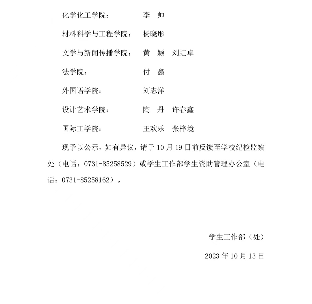 关于2022-2023学年国家奖学金获奖学生初审名单的公示