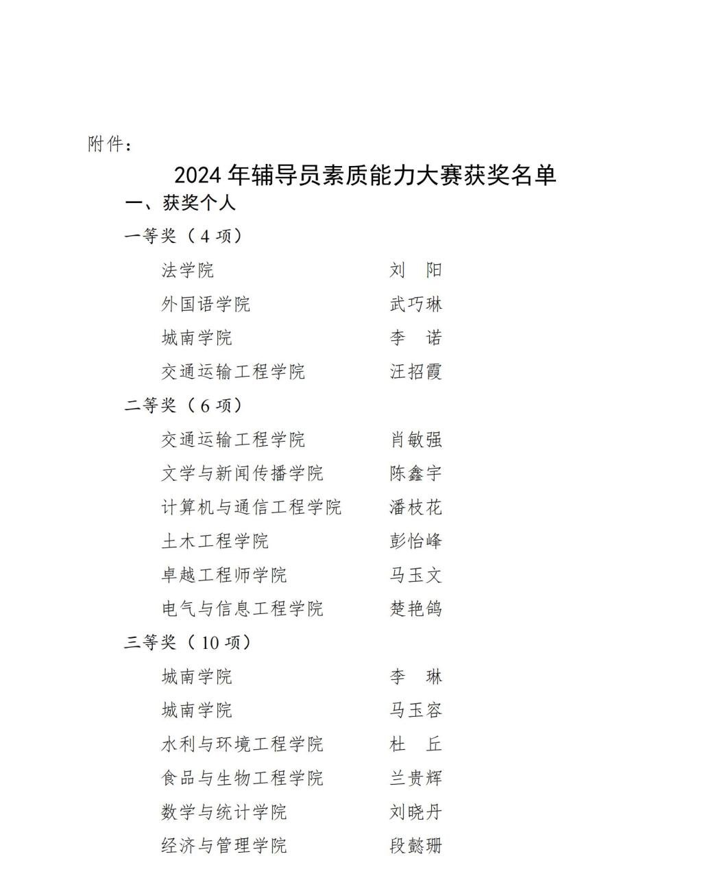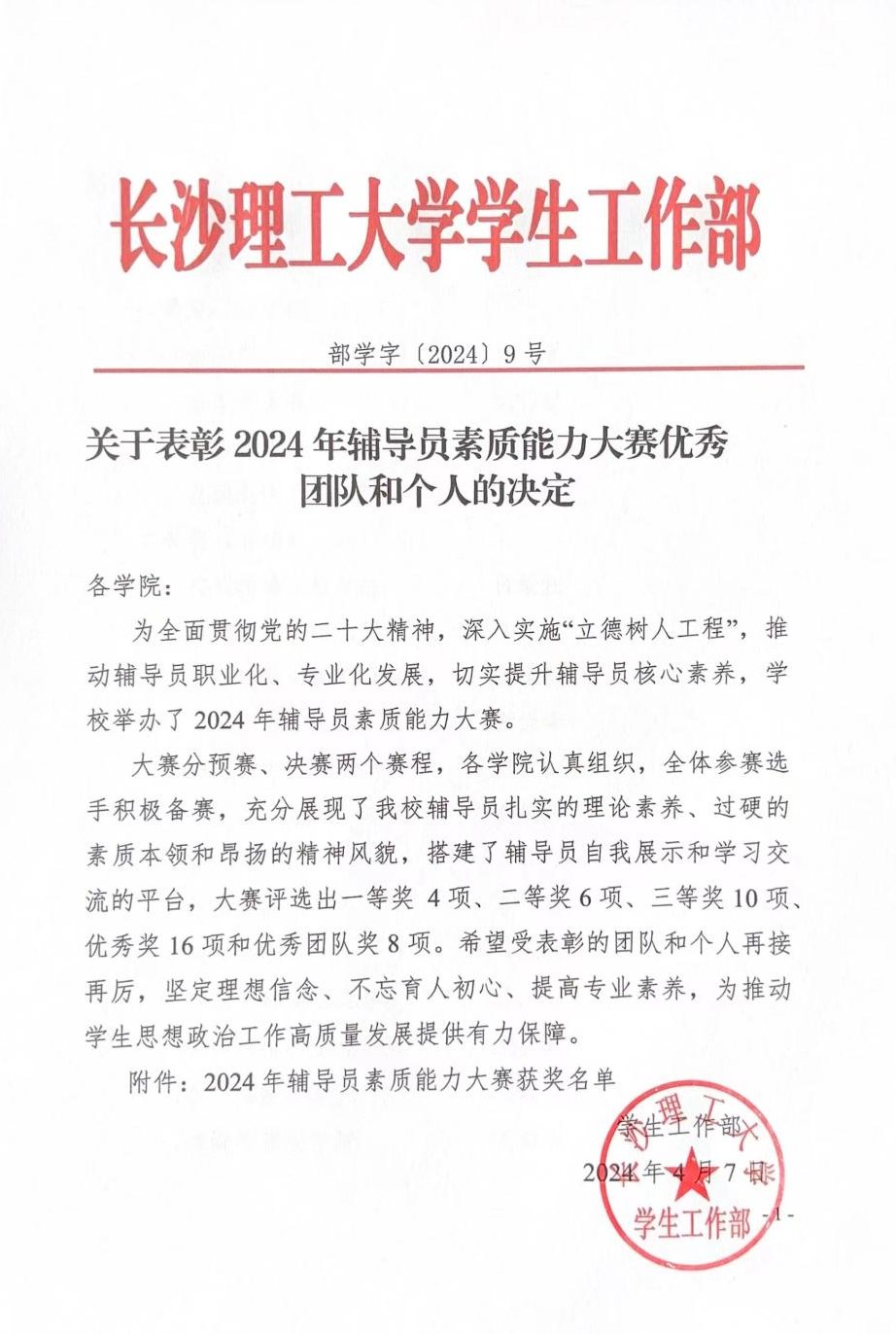关于表彰 2024 年辅导员素质能力大赛优秀团队和个人的决定