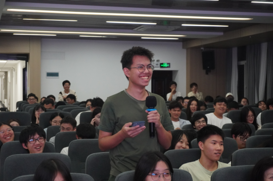 整场讲座持续2个多小时,现场互动环节气氛热烈。“彭老师,我喜欢看小说,但对论文提不起兴趣,如何调整不同类型阅读间的差异?”马克思主义理论专业学硕2301班黄笑提问道。“读论文枯燥无味,不妨试试让AI帮你解读要点、分析框架,再以故事情节的方式输送给你。”彭向训回答道。