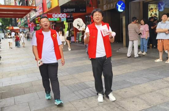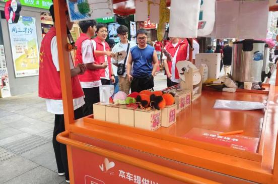 活动现场,志愿者们热情地为市民递上清凉的饮用水,并耐心介绍“山里娃的梦想小书包”公益项目。他们通过爱心义卖的方式,向市民推介由留守儿童画作制作的明信片、长沙文创冰箱贴等特色纪念品,号召大家为山区儿童奉献爱心。同学们分工协作,敬甲琪负责讲解项目内容,郭峰展示受助儿童的照片,张浩诚维持现场秩序,赵仲达在街上热情宣传,窦致远用心记录整个过程,整个活动井然有序又充满温情。
