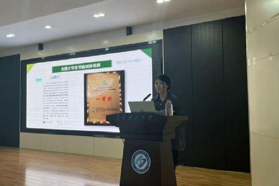 作为科创“引路人”,化苑科创平台竞赛部部长肖麟媛以“从入门到精通:大学生竞赛全攻略”为主题,为新生绘制了清晰的竞赛地图。她结合自身“挑战杯”“国创”等赛事参赛经验,重点解析了中国国际大学生创新大赛、“挑战杯”全国大学生课外学术科技作品竞赛、全国大学生化学实验创新设计大赛等三大核心赛事的赛制规则、备赛要点与评审逻辑,特别针对大一阶段推荐了校级“化学实验技能大赛”、省级“节能减排社会实践与科技竞赛”等赛事。“早规划、早组队、早实践,才能在科创赛道抢占先机。”她的分享既有数据支撑又有案例佐证,赢得台下频频点头。