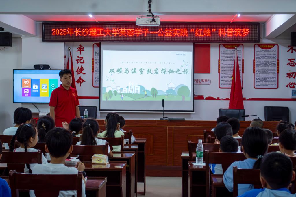 为深化绿色低碳理念,推动节能知识普及,7月10日,湖南省芙蓉学子公益计划立项团队—437必赢会员中心能动学院“红烛”科普筑梦团(以下简称“红烛”团队),在张家界桑植县竹叶坪乡金龙村,为乡村青少年开启了“双碳政策与温室效应”探索之旅,以双碳知识科普+节能实践的方式,倡导大家争做绿色低碳的守护者、践行者。