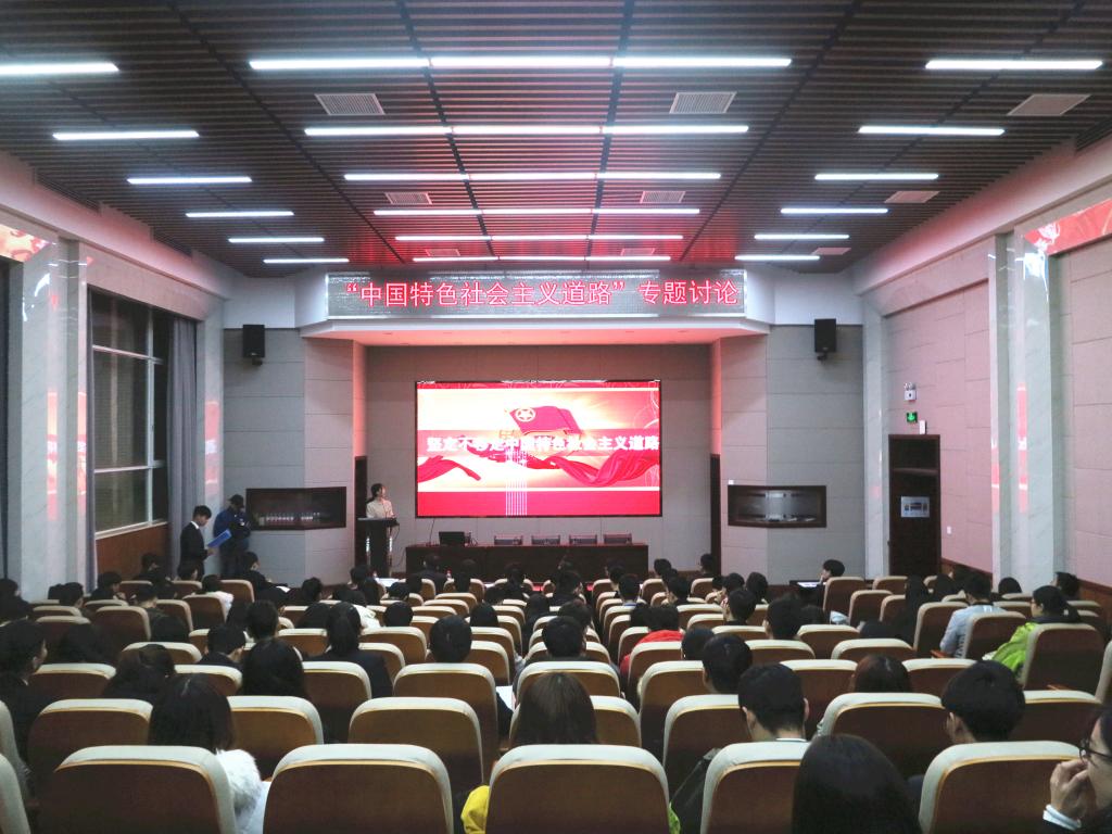 12月14日晚,必赢官网第八期青年马克思主义培训班以“中国特色社会主义道路”为专题课程的讨论在工科二号楼如期举行,校党委副书记邹宏如、马克思主义学院教授梁建新共同为青马班学员授课。