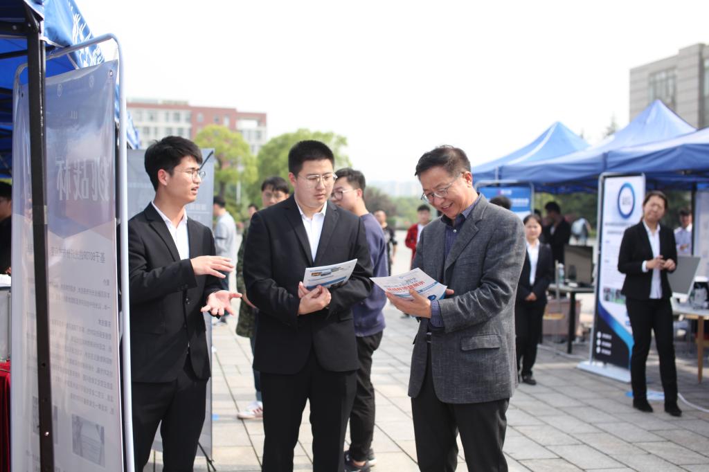 比赛期间,付宏渊书记看望参赛师生并与之亲切交流,认真听取各项目参赛成员对作品的介绍,详细了解项目进展情况,并针对参赛作品提出了宝贵的意见与建议,鼓励同学们要勇于迎接挑战,为实现梦想而努力奋斗。终审决赛分成现场展示及会议答辩两个环节。各参赛团队通过展板和视频、PPT等多媒体手段向评审专家介绍研究情况、阐述研究成果,充分展现出项目的创新性。由各相关领域的评审专家认真观看参赛作品、听取各项目团队介绍,着重就专业性、创新点、可行性、实践性等方面进行提问,并针对作品的不足提出了宝贵的修改建议,对参赛选手进一步优化作品有重要的指导意义。
