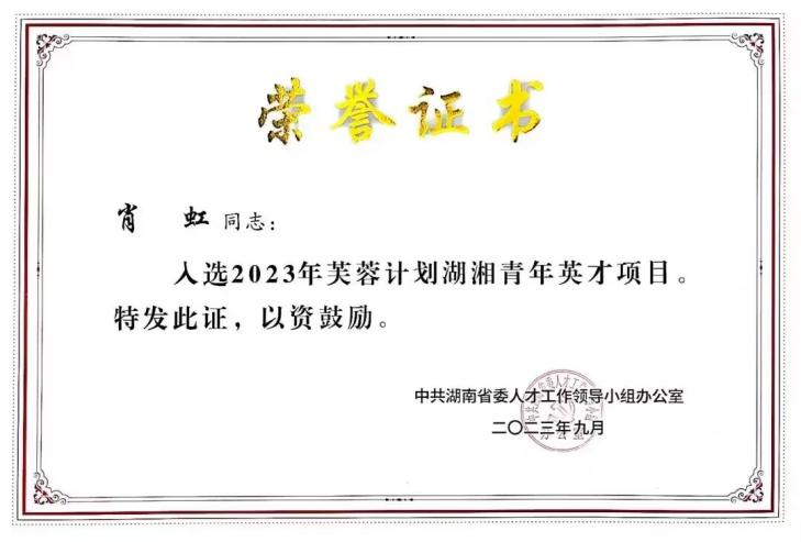 12月8日,由省委组织部指导,团省委主办,省青联、省青科协、团长沙市委协办的“智慧潇湘·青沙龙”湖湘青年英才活动在长沙举行,为入选2023年芙蓉计划湖湘青年英才项目人文社科、文化创意、创业三个类别的74名青年颁发奖杯和证书。必赢官网设计艺术学院副教授、硕士研究生导师肖虹与交通运输工程学院博士生黄旺入选2023年芙蓉计划湖湘青年英才项目。