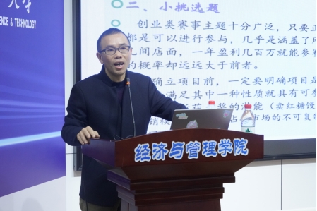 罗湖平详细介绍了“挑战杯”创业计划竞赛的情况,分析了“大挑”“小挑”以及“互联网+”大学生创新创业大赛赛事的特点及区别,指导师生立足专业选择学科竞赛项目,选好社会实践调研的方向,并现场解答了与会师生的疑问。经管学院学工办主任周路路老师分析了今年“挑战杯”国赛终审项目的选题,并从比赛现场的布展、答辩等方面分享经验。本次“挑战杯”国赛二等奖、省赛一等奖的两个项目团队分别进行路演展示,“莓”好相随团队负责人陈思雅以及筑梦乡村团队邹一源的生动介绍令现场观众掌声连连。经管学院曹冰玉教授就多年指导“挑战杯”竞赛的经历进行分享,她讲述了师生团队开展调研、备赛的经验,表达了以赛育人的初心。经管学院辅导员杨舒文现场进行第二届“远光杯”创新创业竞赛动员。