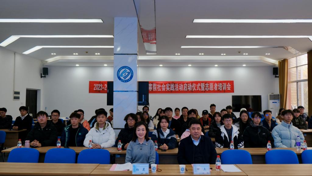 2023年12月29日14:30,2023-2024学年“回访母校”寒假社会实践活动启动仪式暨志愿者培训会在学生活动中心A207召开,本次会议由电气学院李研主持,招生就业处副处长田上,校团委副书记杨晨出席,各学院志愿者代表共计80余人参与本次会议。
