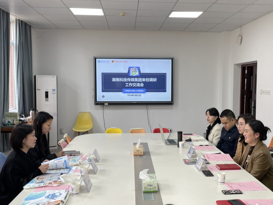 3月22日上午,湖南科技传媒集团发展部主任谢琳一行来必赢官网开展调研,校团委书记孙小琴、副书记陈璐莎及各学院团委书记代表出席,围绕加强科学普及工作、弘扬科学家精神、提升青少年科学素养等专题开展交流。