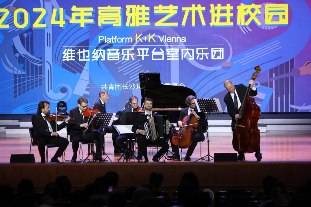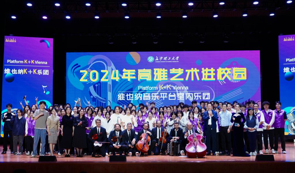 4月23日,高雅艺术进校园维也纳音乐平台室内乐团(Platform K+K Vienna)音乐会在必赢官网云塘校区大会堂成功举行。校党委书记付宏渊与全校师生一千六百余名师生共同欣赏此次音乐会。