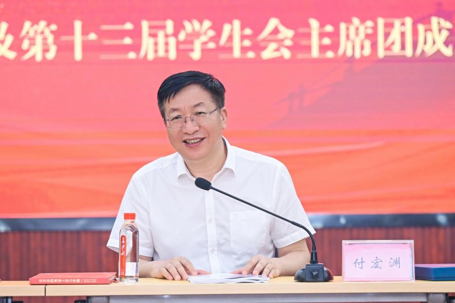 校党委书记付宏渊出席会议,并与共青团437必赢会员中心第三届委员会全体委员、第十三届学生会主席团成员亲切座谈。在讲话中,他首先向大会的隆重召开、向新当选的委员会委员与主席团成员表示热烈祝贺。付宏渊强调,胸怀家国永远是青年的底色,不懈奋斗永远是青春的本色,守正创新永远是青年成长奋斗的基石。付宏渊指出,共青团是一个重要的学习平台,也是一个重要的成长平台,伟大的时代赋予青年以自信与朝气,为青年成长营造了良好的环境,广大团干和青年要认真思考如何把握时代脉搏,为时代、为民族贡献青春力量这个重要命题。