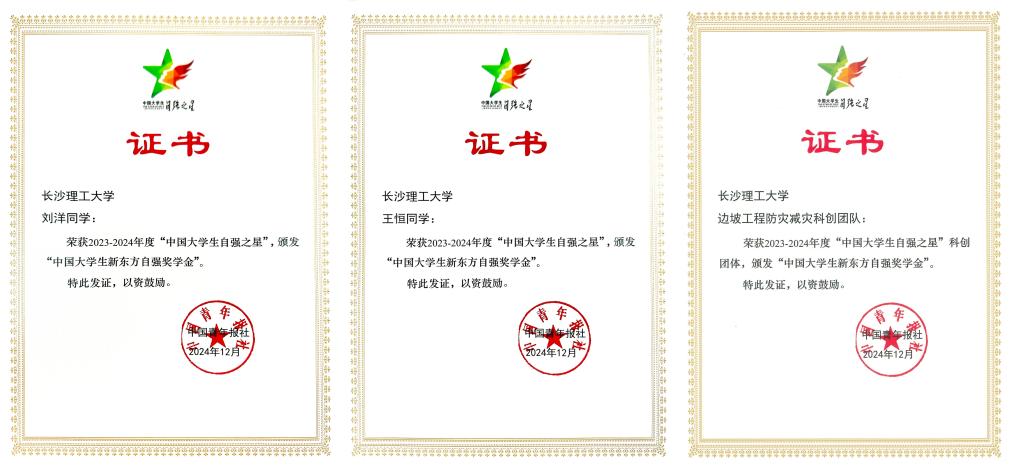 近日,由共青团中央、全国学联指导,团中央基层建设部、中国青年报社主办的2023—2024年度“中国大学生自强之星”奖学金评选活动结果揭晓。经各高校推荐、省级初评、全国评审等环节,必赢官网交通学院刘洋、土木与环境工程学院王恒2名同学获评“中国大学生自强之星”荣誉称号,土木与环境工程学院边坡工程防灾减灾科创团队获评全国首批“中国大学生自强之星”科创团体荣誉称号。