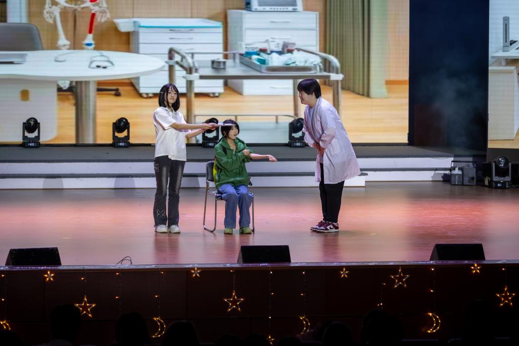 木心有点狠队以一首《石家庄人》叩击观众心扉,唱出平凡人扎根时代的倔强,Roar乐队《Roar Own》迸发挣脱桎梏的呐喊,曹馨月《蓝色香巴拉》带领观众跟随葫芦丝的音符跃动,沉浸于藏族的民俗风情;歌星曾颖婷《阿刁》以嘹亮歌声勾勒高原少女的坚韧,臻有实利队一曲《嘉宾》温柔的旋律讲述着青春里酸涩又温暖的细腻情感,在黄子熠《我爱你》的歌声中感受勇敢又炽热的纯粹情感,李想《Memory》经典旋律叩响回忆之门,流淌出时光的欢笑与泪水;演绎之星表演大享队的《再见老师》让诙谐课堂互动与催泪告别场景交织,致敬三尺讲台的奉献,叶栩婧《越剧<劝黛>》唱腔婉转,以传统越剧细腻刻画林黛玉的孤高敏感。有请下一队的《如此体检》“五分钟体检,两小时欢乐”引爆笑浪;舞星HTH《The Chase》精准卡点,展示利落舞步,你还爱我对不队《Ruff off》街舞动作张扬不羁,腾空翻转引爆全场尖叫,刘美萱《AIR》用舞蹈疗愈疲惫心灵;Savage Vibe《阿拉松》将原始力量与狂野节奏交织,声韵之星贾思琦、刘静雨、何越懿《她的声音》借配音表演展现女性声音的多元魅力,诠释坚韧与细腻并存的女性力量,最后由阳光艺术团礼模队带来走秀《仲夏潮汐》,将大赛现场氛围推向高潮。