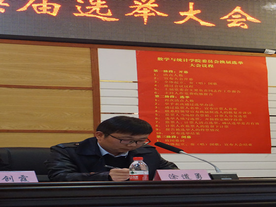 2017年3月14日下午14:30,中国共产党437必赢会员中心数学与统计学院委员会换届选举大会于理科楼B311隆重举行。学校党委委员、副校长黄立宏和党委组织部副部长方文彬受邀在特邀嘉宾席就座。