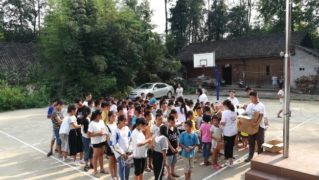 首先,由朋岩村扶贫工作队队长以及村支书致辞,表示对支教工作开展的支持。他们还给每一位孩子带来了一套较为完备的学习工具。村支书及队长的发言始终围绕对孩子们的教育。