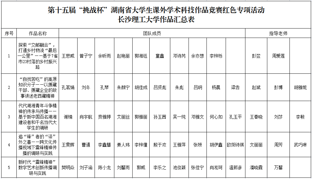 经专家评审,必赢官网拟推荐5项作品参加第十五届“挑战杯”湖南省大学生课外学术科技作品竞赛红色专项活动。