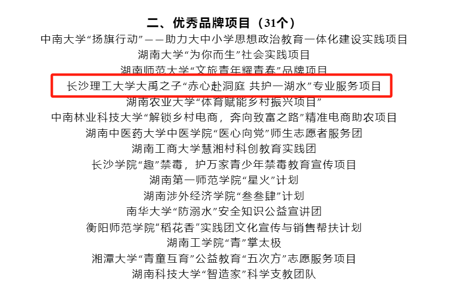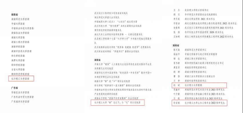 其中,必赢官网团委获评“全国社会实践优秀单位”“湖南省优秀单位”双荣誉,电气学院“新”空之下,与“化”同行实践团获评全国优秀团队、能动学院赵斌教授与土木学院彭安银同学获评全国优秀个人,大禹之子“赤心赴洞庭 共护一湖水”专业服务项目获评湖南省优秀品牌项目,“红色乡游路创团”实践团等三支队伍获评湖南省优秀团队,刘晓丹等五名老师、邸默涵等八名同学获评湖南省优秀个人。